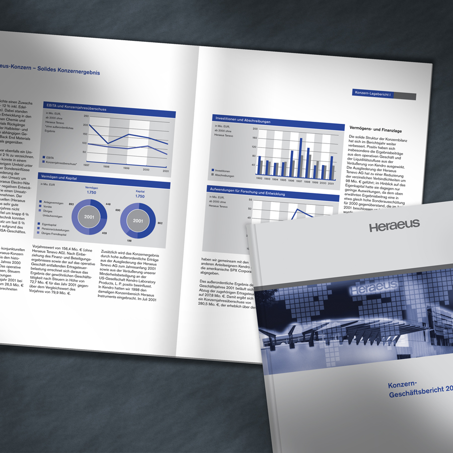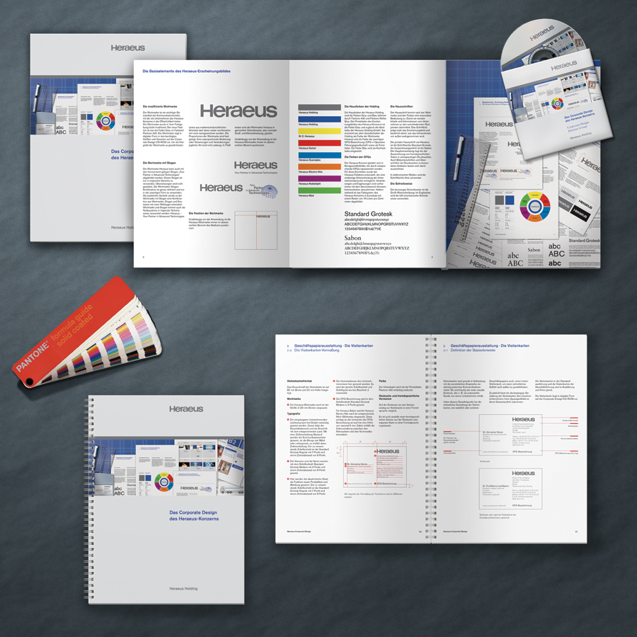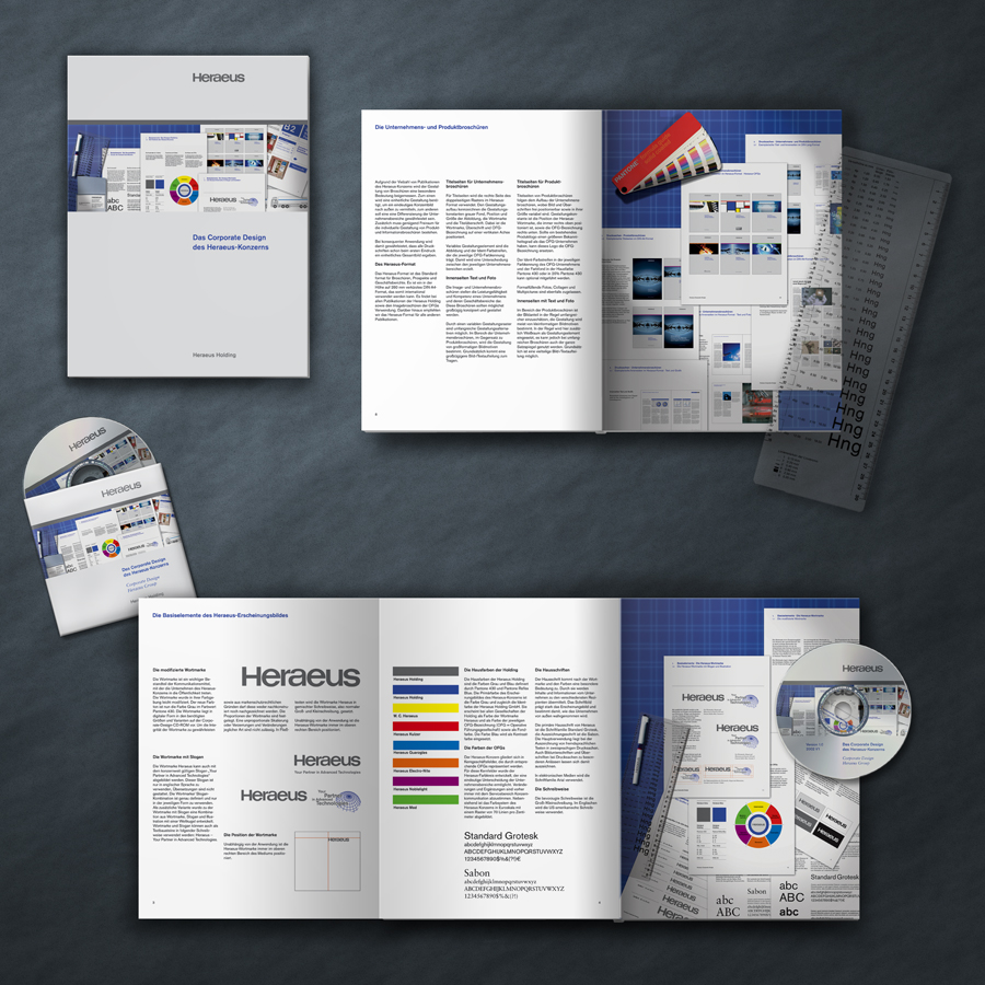 Heraeus ist ein deutscher Technologiekonzern mit den Schwerpunkten Edel- und Sondermetalle, Medizintechnik, Quarzglas, Sensoren und Speziallichtquellen. Das Unternehmen besteht seit 1851 und hat seinen Sitz in Hanau und zählt zu den größten familiengeführten Unternehmen in Deutschland. Für die Heraeus Holding wurde ein komplett neues Corporate Design entwickelt und realisiert. Der Projektumfang des Erscheinungsbildes umfasste die Entwicklung eines Jubiläumslogo, Geschäftspapiere sowie weitere diversen Kommunikationsmittel und die Ausarbeitung von Geschäftsberichten. Dokumentiert wurde das Corporate Design in einem umfangreichen Gestaltungshandbuch.